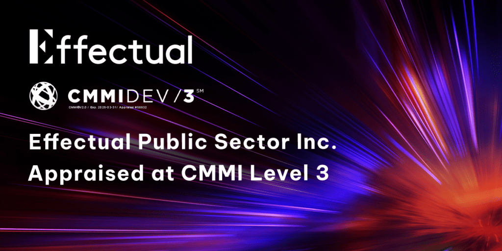 Jersey City, NJ – September 8th, 2022 – Effectual, a modern, cloud first managed and professional services company, announced that its public sector arm has been appraised at level 3 of ISACA’s Capability Maturity Model Integration (CMMI®). Effectual Public Sector Inc. provides mission-critical IT modernization solutions to Federal, State, Local, Education, and Nonprofit organizations. CMMI is a proven, outcome-based performance model and a globally accepted standard committed to helping organizations drive continuous improvement and quality management efforts. The appraisal was performed by Concept Quality Assurance Labs.